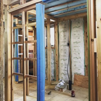 仮設のキッチンやお風呂を設置し手の工事です